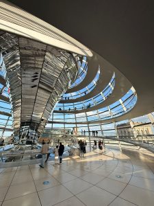 In den folgenden Tagen stand ein abwechslungsreiches Programm auf dem Plan. Ein besonderes Highlight war die Führung durch den Reichstag inklusive Besichtigung der beeindruckenden Glaskuppel, von der aus sich ein toller Ausblick auf die Dächer Berlins bei bestem Wetter bot. Ebenso eindrucksvoll war die Bunkerführung durch einen Mutter-und-Kind-Bunker, bei der wir mehr über die Geschichte Berlins während des Zweiten Weltkriegs erfuhren.
