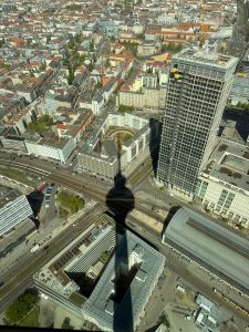 Nach dem Einchecken im Hotel und einer kurzen Verschnaufpause zog es uns am Nachmittag direkt ins Herz der Stadt, zum Alexanderplatz. Dort durfte natürlich ein Besuch des Fernsehturms nicht fehlen. Bei bestem Wetter bot sich uns ein beeindruckender Panoramablick über die Dächer Berlins – von dort oben konnten wir unter anderem den Reichstag, das Brandenburger Tor und viele weitere bekannte Sehenswürdigkeiten entdecken.